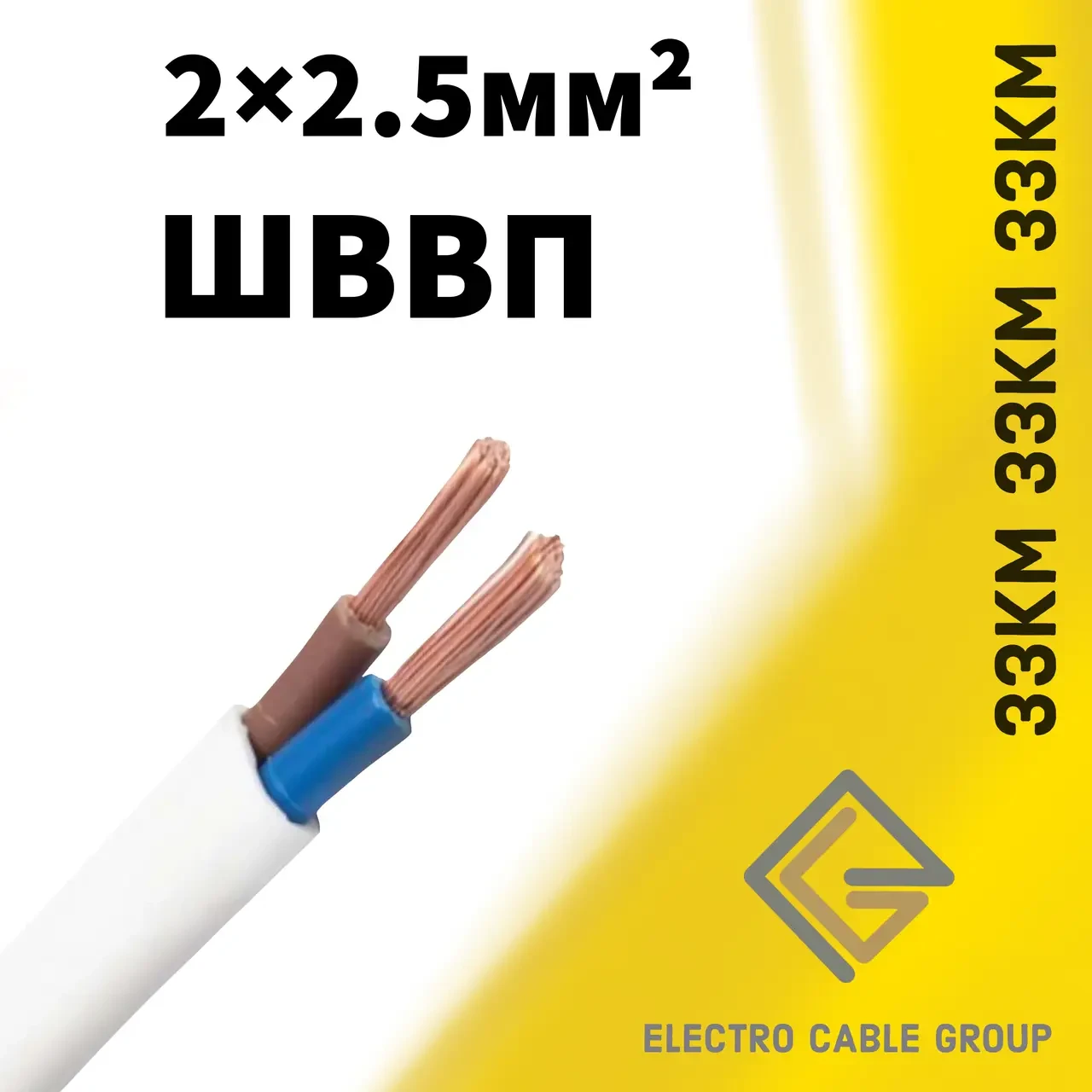 Провід ШВВП 2х2,5 - плоский шнур з мідними, паралельно покладеними жилами, оболонка і ізоляція жив виконані з ПВХ-пластикату. Шнур гнучкий, має 2 багатодротяна жили з поперечним перетином 2,5 мм2. Призначений для прокладки в освітлювальних і силових електричному колі з номінальною напругою 0,38 Кв і частотою 50 Гц. Використовується для під'єднання електричних побутових приладів, світильників та іншого електрообладнання в житлових і адміністративних будівлях, їм живиться силові бокси, розподільні щити, електричні установки, стабілізатори напруги тощо З ШВВП так само виготовляються подовжувальні шнури.